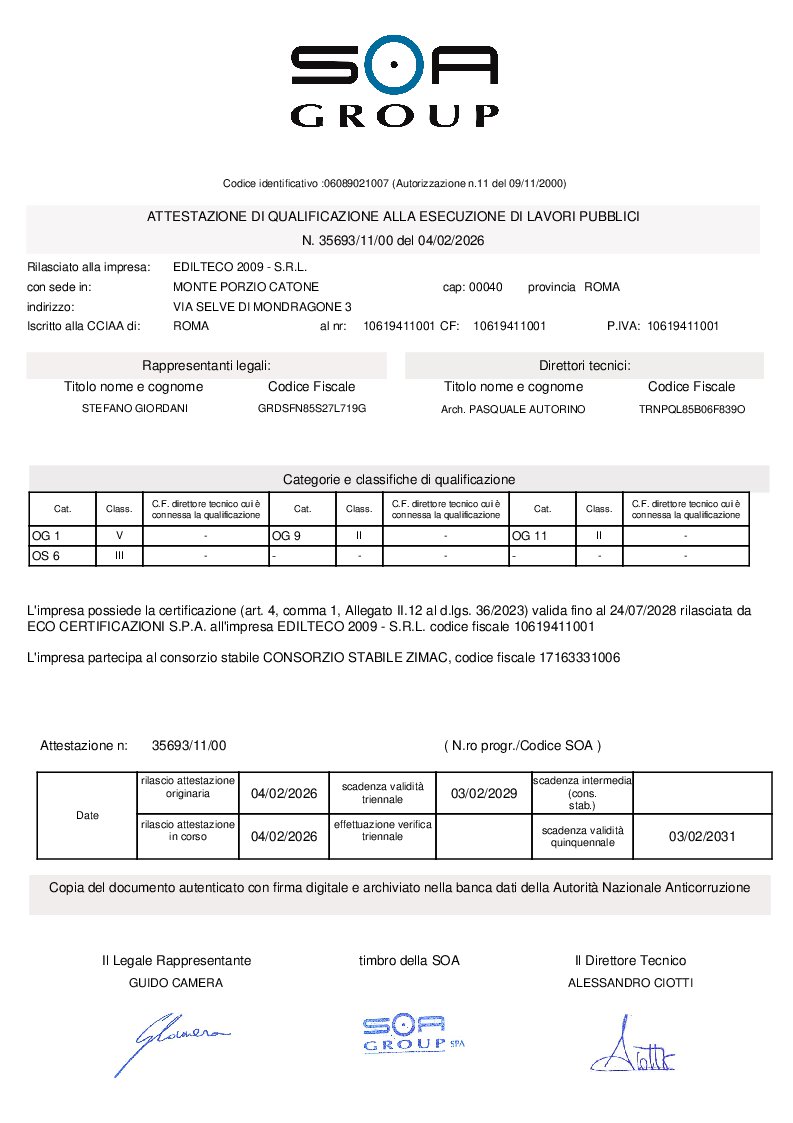 KLQC ha supportato Edilteco 2009 in un percorso strategico di valorizzazione dei requisiti tecnici ed economici finalizzato all’implementazione della propria attestazione SOA.