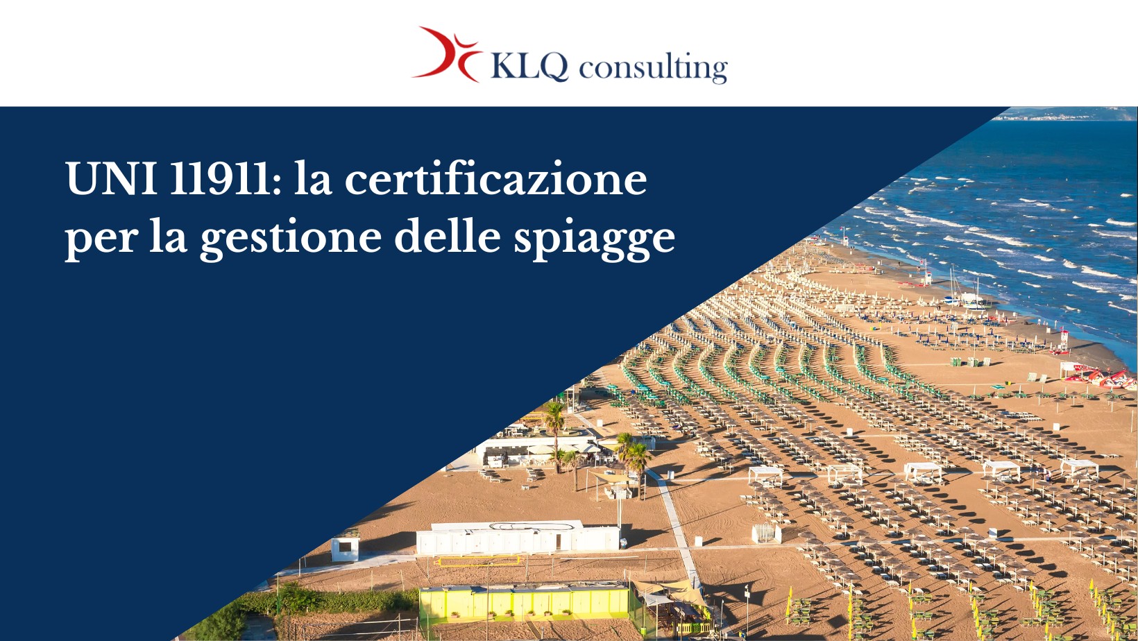 KLQC è specializzata nella preparazione alla certificazione UNI 11911 per la gestione delle spiagge e nella sua integrazione con la ISO 13009. Affianchiamo i gestori balneari con un approccio concreto, orientato ai risultati e alla valorizzazione reale dell’attività.