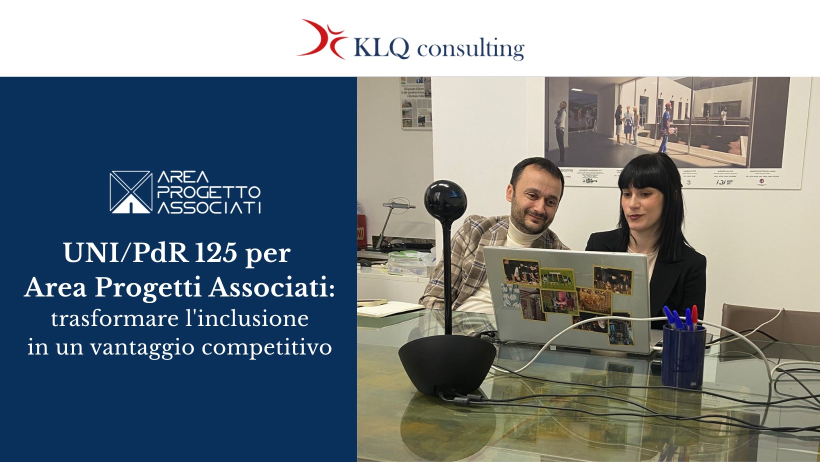 Il lavoro svolto con Area Progetti Associati ci ha consentito, come KL Quality Consulting, di sviluppare un’attività di consulenza efficace, motivante e interamente in modalità online, modalità che riteniamo particolarmente adatta per lo schema PdR 125.